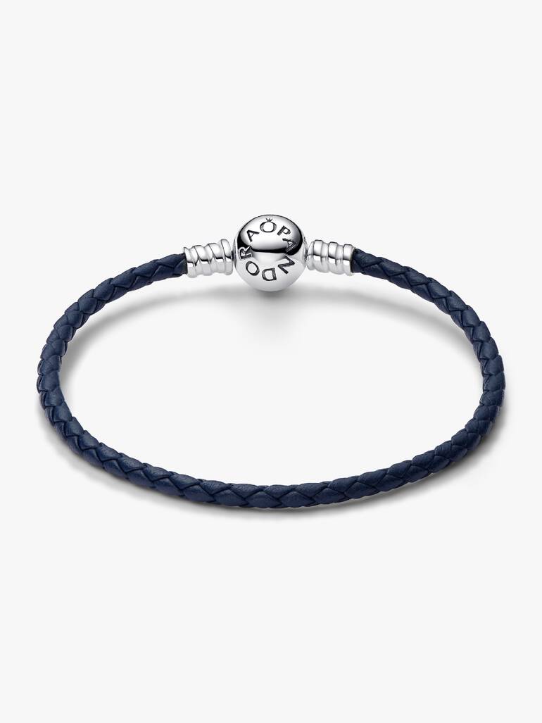 Channel the depths of the ocean and the calm of a midnight sky. The brand Moments Round Clasp Blue Braided Leather Bracelet is crafted from deep blue braided leather and finished with a round sterling silver clasp and