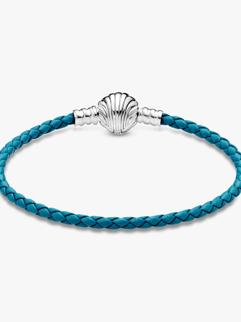 Add a pop of vibrant color to any of your outfits with the brand Moments Seashell Clasp Turquoise Braided Leather Bracelet. The turquoise leather’s intricate braid finishes in a sterling silver shell-shaped clasp that