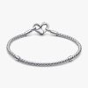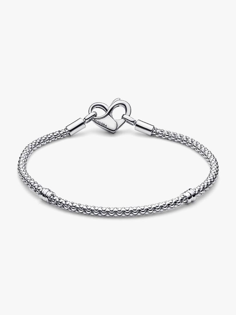 Update your collection with our new brand Moments Studded Chain Bracelet. Hand-finished in sterling silver, this bracelet features a flexible, textured chain and an infinity-detailed openable heart-shaped clasp with an