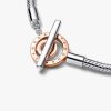Make a statement with this bold and graphic piece. Inspired by our iconic pendant design, the brand Moments Two-tone Logo T-Bar Snake Chain Bracelet features a duo of 14k rose-gold plated circles forming a closure that