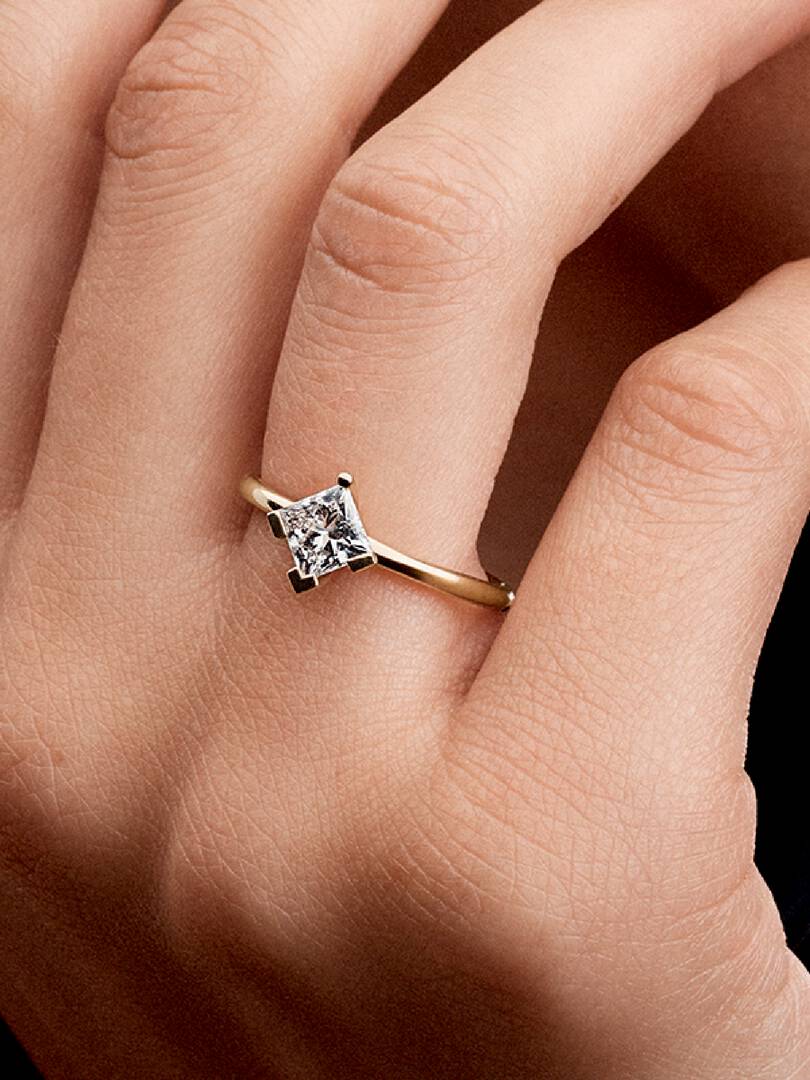 Shine in the brand Nova 14k Gold Lab-grown Diamond Ring. Inspired by the illusion of capturing and holding a precious fragment of light, this 14k gold ring showcases a 1.00 carat square princess excellent cut lab-grown
