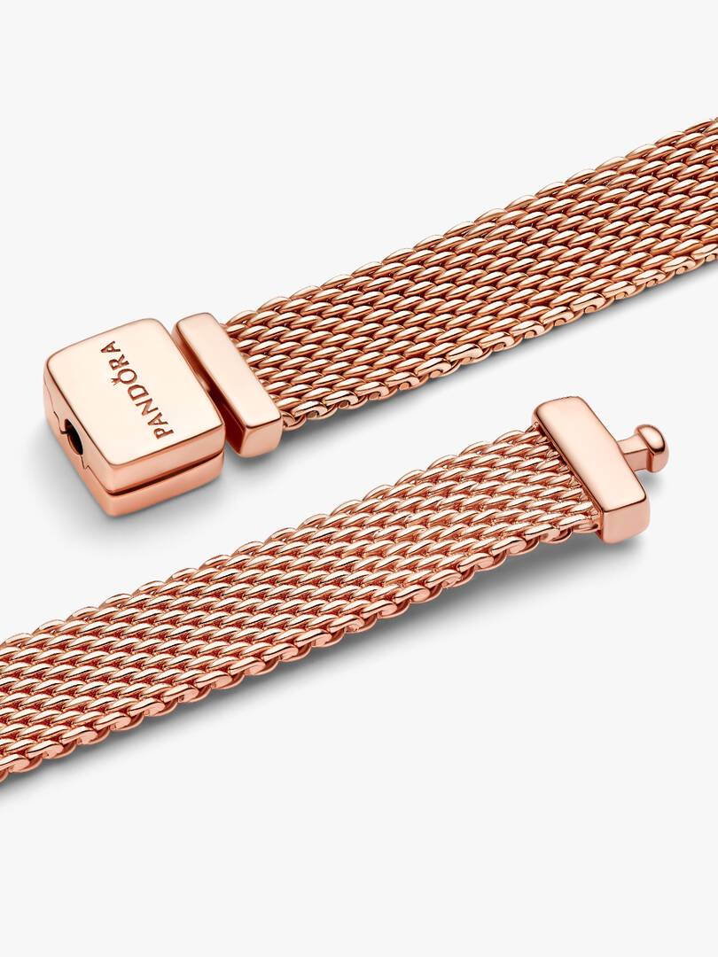 brand Reflexions is a modern way to reflect who you are. The Reflexions Mesh Bracelet holds clip-on charms that sit flush to mirror your style – whatever shape it takes. Plated with 14k rose gold for a blush-pink finis