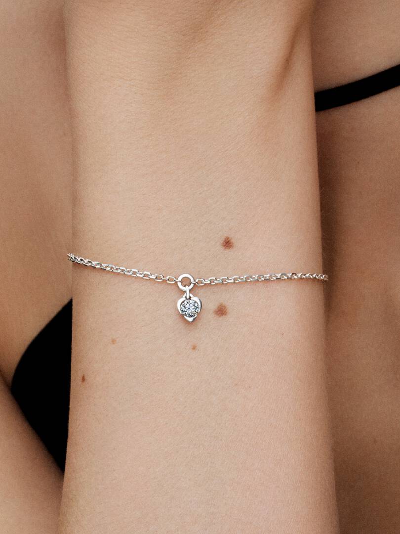 cing a 0.25 carat lab-grown diamond. On the back of the stone, a heart-shaped cut-out echoes the shape of the setting and lets the light shine through to maximize sparkle. A slider with silicone inside allows you to adjust the bracelet for the perfect fit. A universal symbol of love, the heart shape makes this lab-grown diamond bracelet the perfect gift to represent a special connection – or an affirmation of the love you have for yourself.