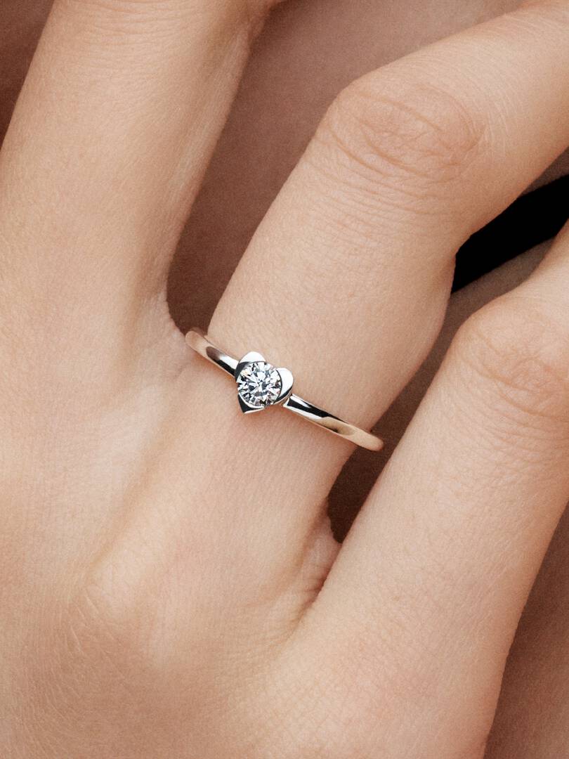 nter. On the back of the stone, a heart-shaped cut-out echoes the shape of the setting and lets the light shine through to maximize sparkle. A universal symbol of love, the heart shape makes this lab-grown diamond ring the perfect gift to represent a special connection – or an affirmation of the love you have for yourself.
