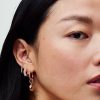 ubic zirconia down the center and one down each side, creating a shimmering three-dimensional effect. The back of each hoop has a plain polished surface. A sophisticated design that looks elegant on its own or styled with other Timeless Pavé pieces.
