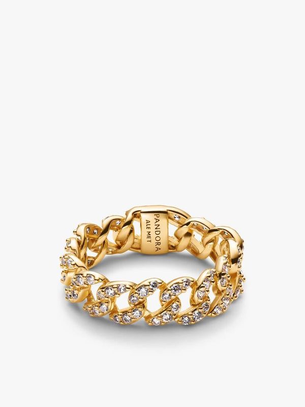 Redefine elegance with our 14k gold-plated ring with 84 bead-set cubic zirconia stones. Featuring a sophisticated chain motif, it adds a dramatic touch to any look.