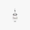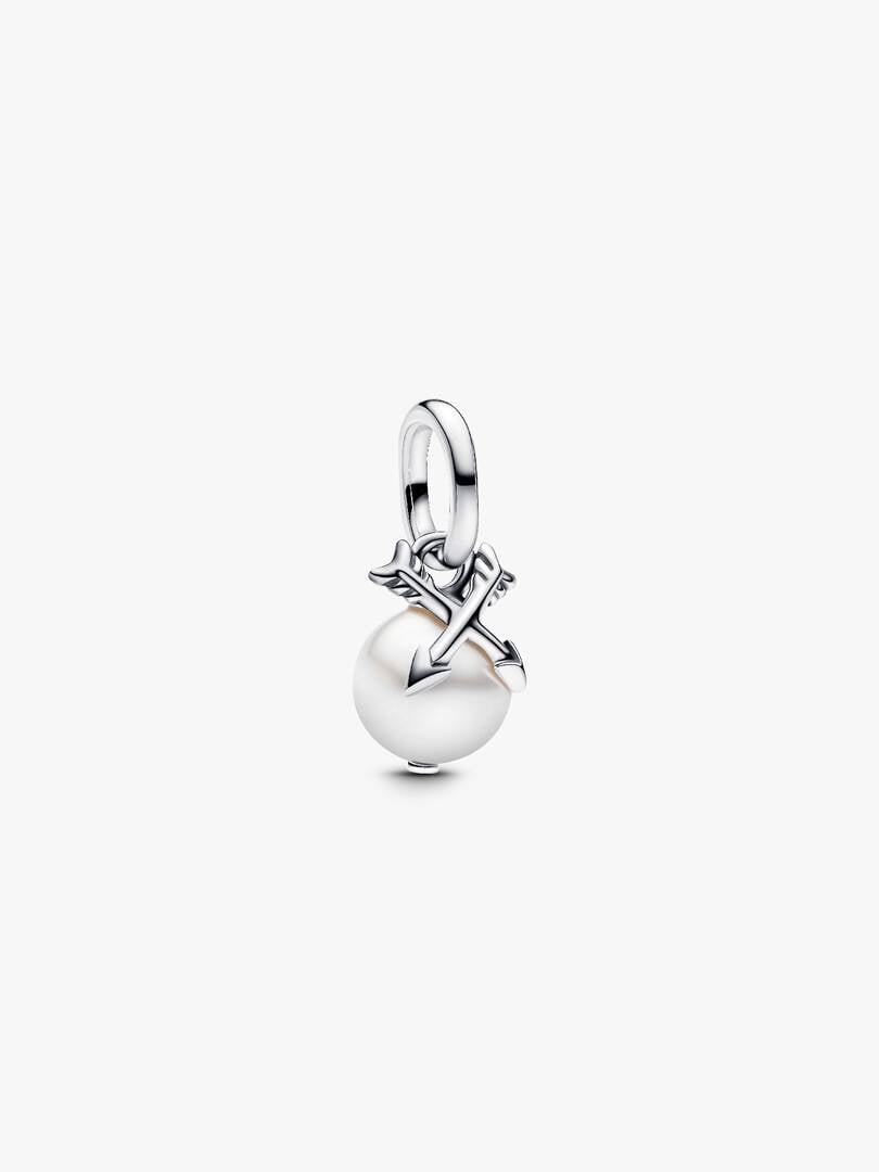 The Pearl & Arrows Mini Dangle Charm combines elegance and symbolism. A round lacquered artificial pearl is set in sterling silver, paired with two intricately detailed arrows crossing over each other. Cupid’s arrows sym