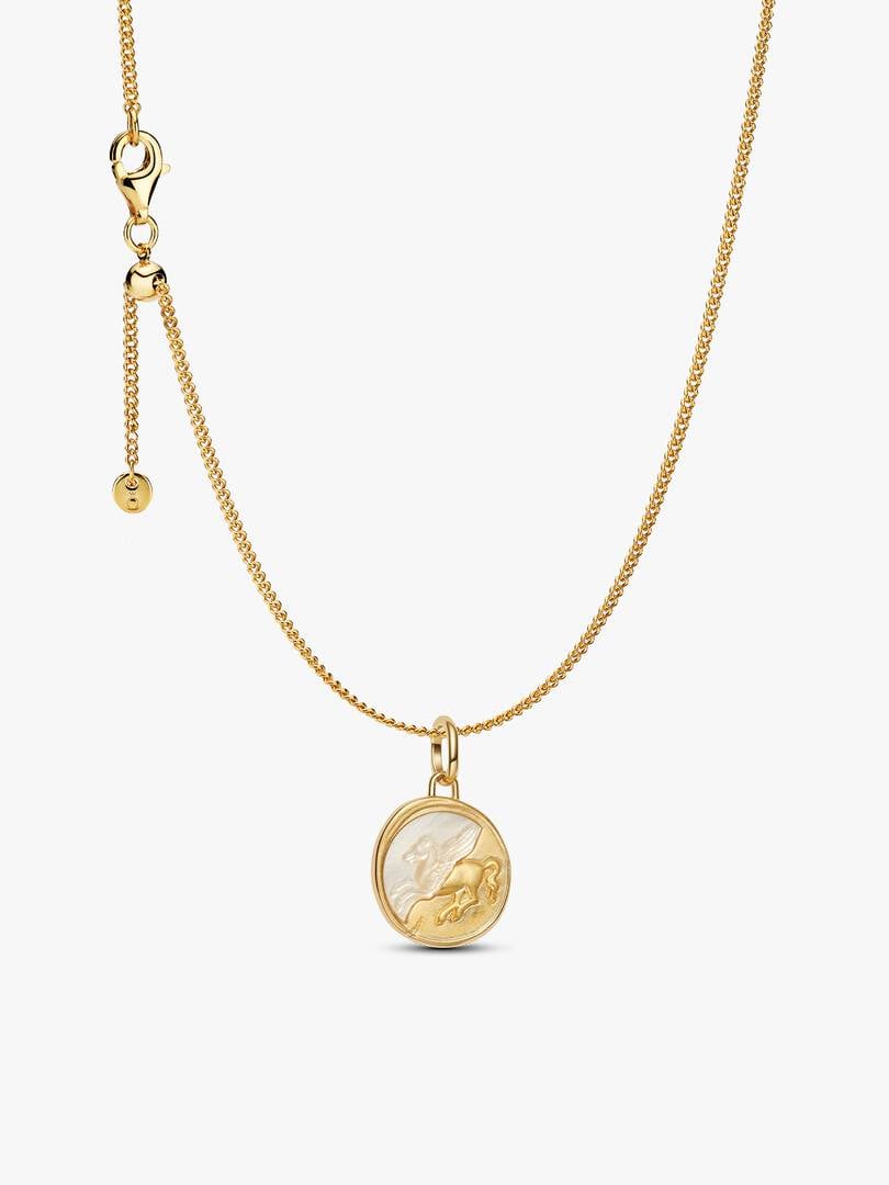 Love is in the 14k gold-plated details. This set pairs an adjustable curb chain with a pearlescent Pegasus medallion engraved with ‘EX ANIMO’ — a mythical symbol made to hold your guiding words.