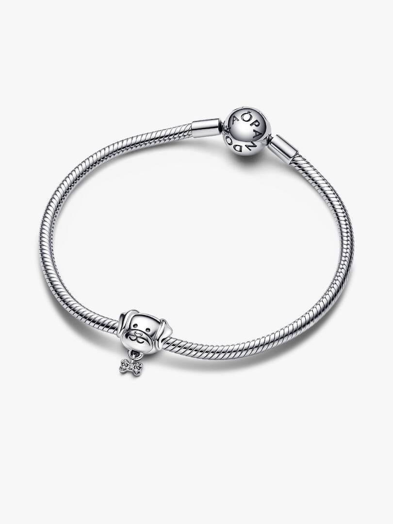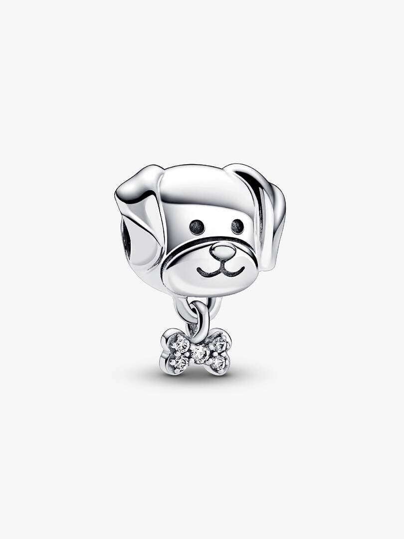 Let your love for your four-legged bestie shine with the Pet Dog & Bone Charm. Crafted from sterling silver, this retro piece with a modern touch is decorated with engraved lines on the face and sparkling pavé on the bon