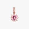 Celebrate spring in all of its glory with the Pink Daisy Flower Dangle Charm. Hand-finished 14k rose gold plating, the daisy charm features pink shaded enamel to bring the delicate, yet resilient flower to life. The spar