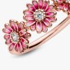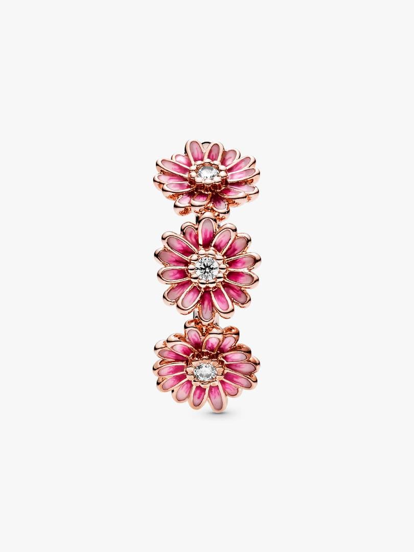 Bring flower power to your style with this flower crown-inspired Pink Daisy Flower Trio Ring. The daisy ring features a 14k rose gold-plated and is decorated with three enamel flowers with cubic zirconia in the centre. A