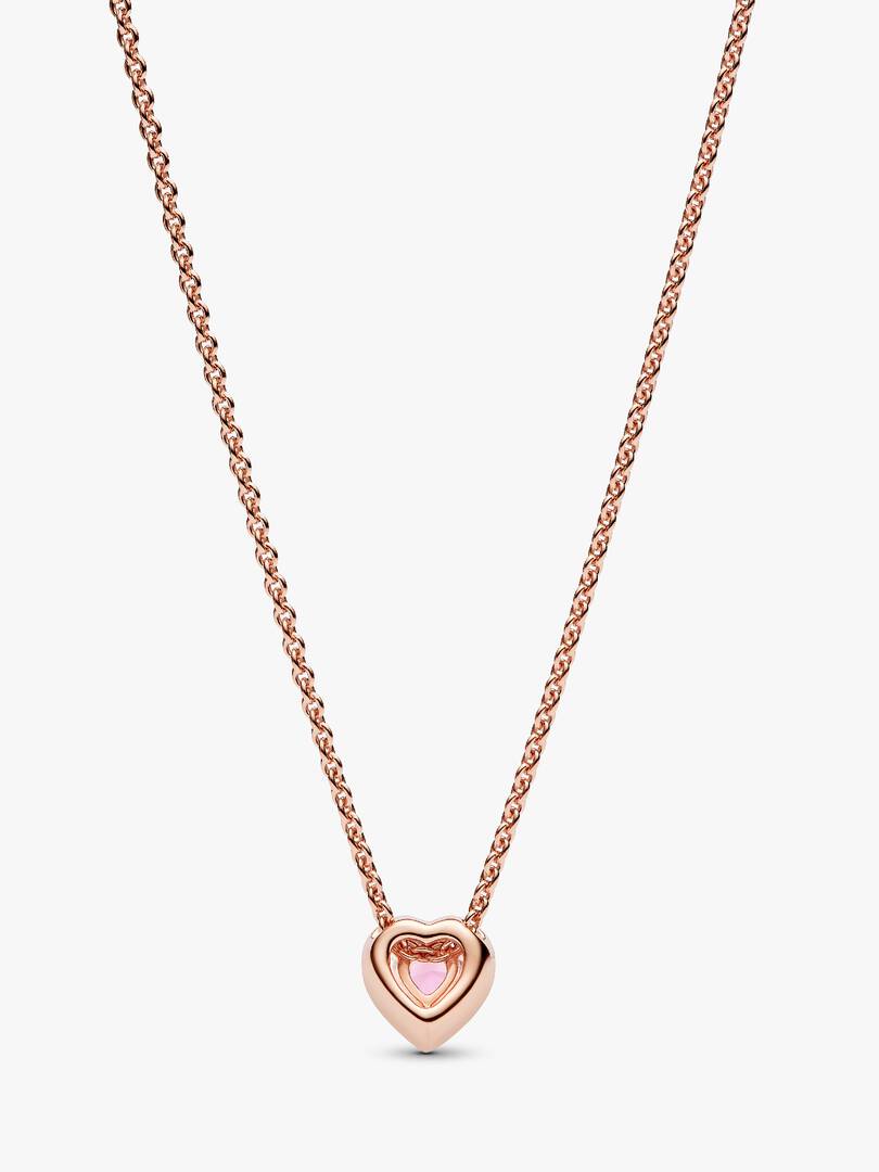 A shimmering pink heart stone, framed by sparkling pavé, sits at the center of this elegant necklace – perfect for adding a romantic and vibrant touch to any look.
