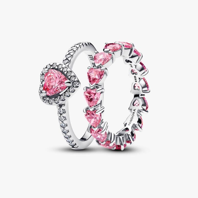 Pink Heart to Hearts Ring Set | Sterling silver
