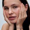 man-made crystal, elegantly surrounded by three clear cubic zirconia. The intricate design symbolizes eternity and adds an additional layer of meaning to the piece. Elevate your bracelet with this essential piece or gift it as a representation of an everlasting bond.