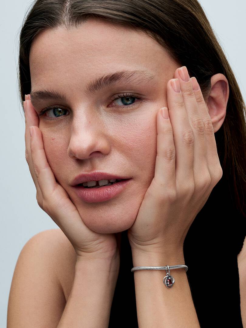 This intricate Red Eternity Circle Dangle Charm is a must-have infinity charm for your brand Moments collection. Crafted in lustrous sterling silver, it features an openwork infinity braid decorated with a central red