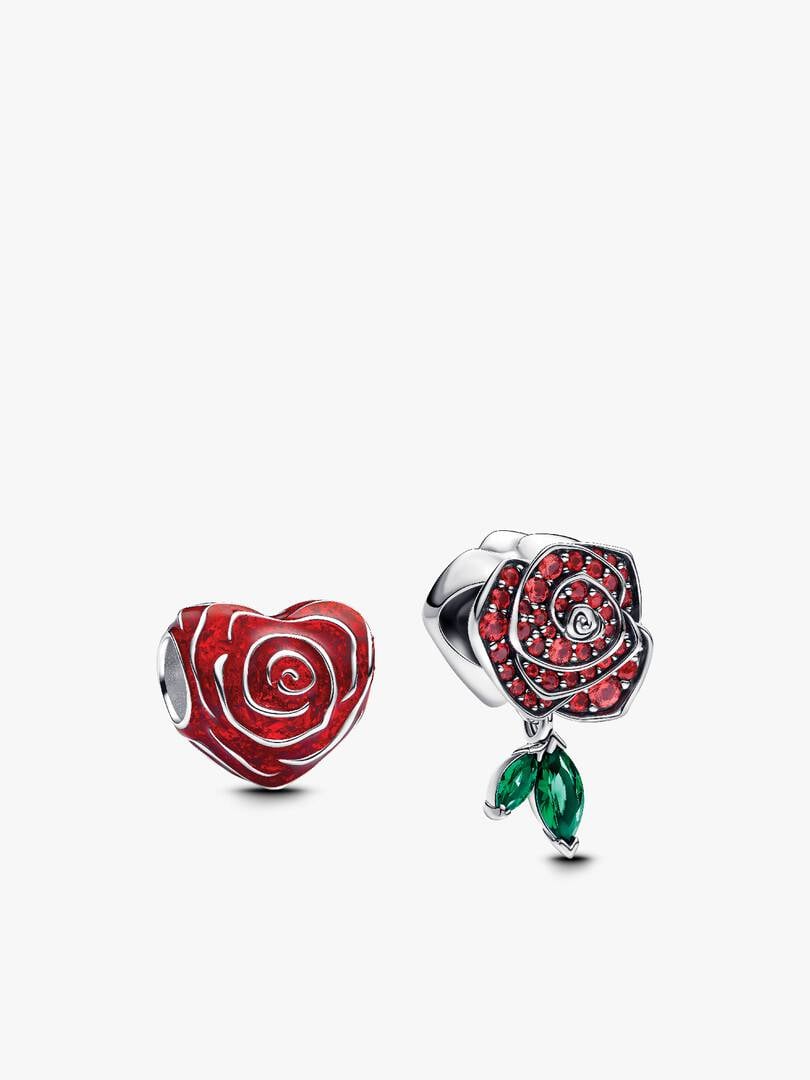 lising love for yourself or the one who makes every day feel like a special day. The Sparkling Rose in Bloom Charm, with its red man-made crystals and green stones, captures the essence of a blooming rose, a perfect symbol of deep affection. Together, these charms are a poetic reminder of love’s enduring beauty.