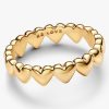 Give a gift from the heart with this 14k gold-plated ring. Expertly crafted with a row of hearts making up the band, this romantic design looks equally beautiful worn on its own or layered with contrasting brand rings.
