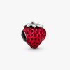 Add the lush flavor of fruit to your look with this sterling silver strawberry charm, hand-finished with transparent red enamel and lifelike seed details created by grooved indents under the enamel. Style it on your favo