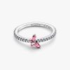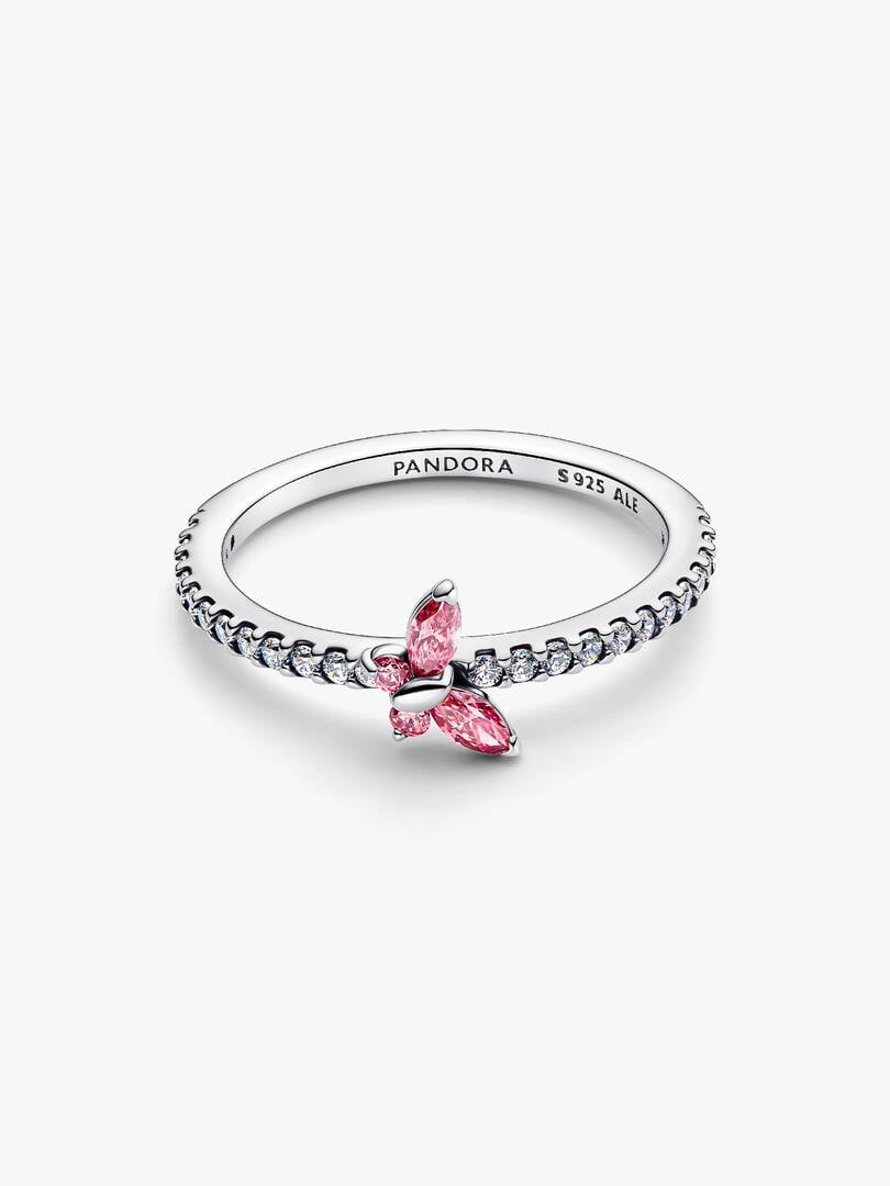 Add subtle sparkle to your look. This sterling silver ring features pink and clear cubic zirconia with a butterfly set at an angle as a symbol of transformation and beauty.