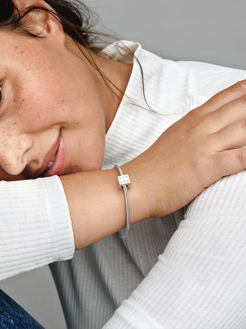 Put a lucky spin on your brand Moments bracelet and up your style game with this Sparkling Dice Charm in sterling silver. The dice design is set with cubic zirconia pips for subtle sparkle. You can also wear it on a ne