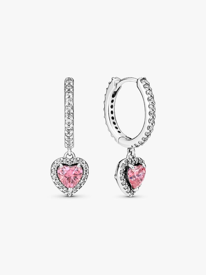 A gift of love for an elegant mom, the Sparkling Halo Heart Hoop Earrings each feature a heart-shaped pink cubic zirconia dangle surrounded by a pavé halo. The pavé on the hoop is accented with round clear cubic zirconia