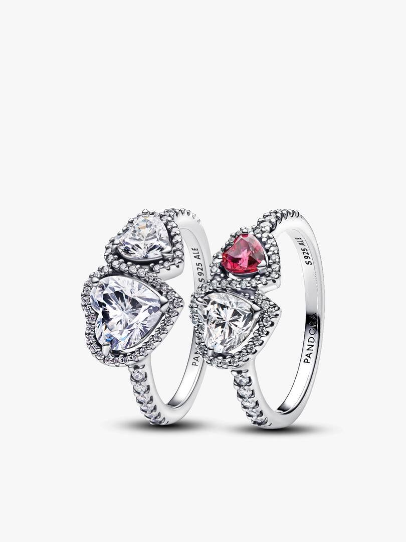 ear cubic zirconia with a vibrant red man-made crystal, while the other features two clear stones for a classic look. Crafted in sterling silver, both rings are designed to symbolize the harmony and unwavering support shared between two souls. Whether worn as a stack or solo statement, this set adds a touch of love and elegance to any occasion.