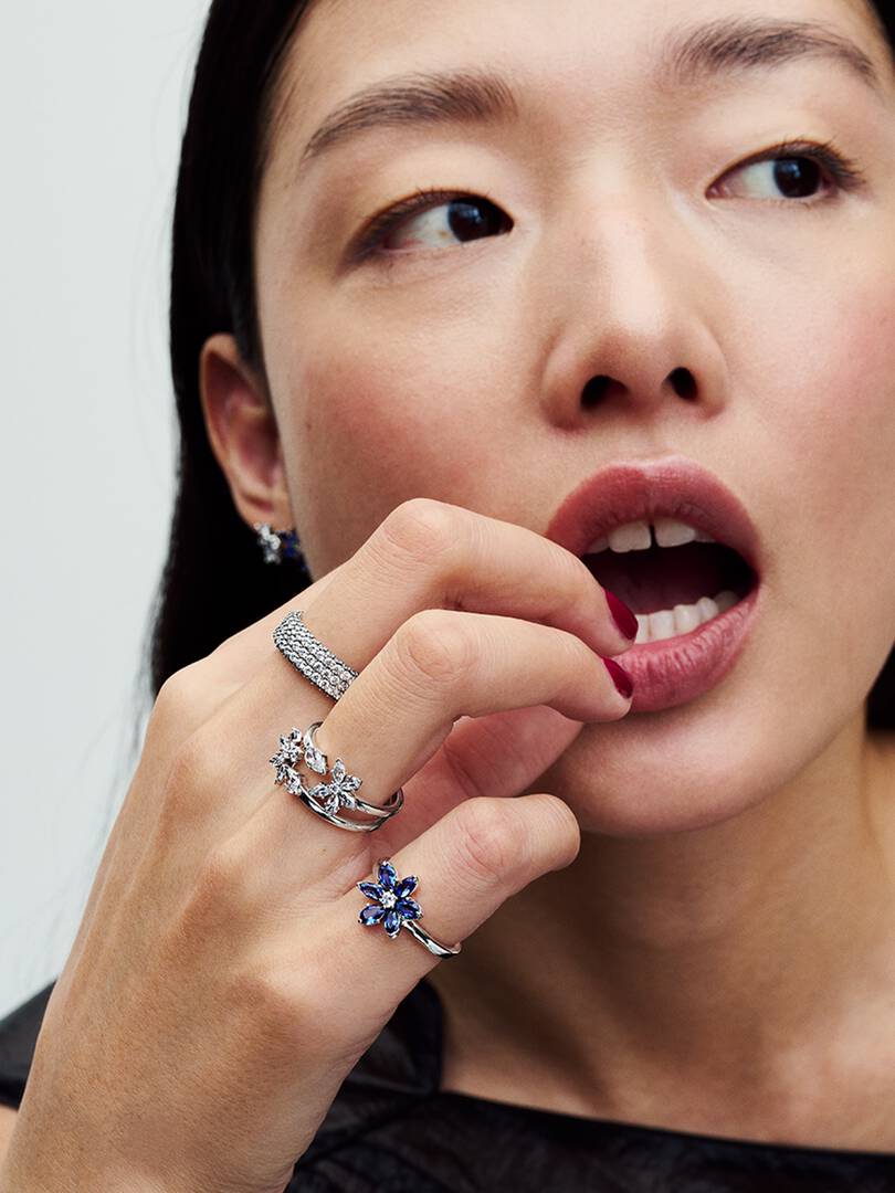 se-shaped blue stones are set around a clear center stone, their various shapes evoking the natural symmetry found in the outdoors. Gift it to a nature lover in your life or wear it yourself alongside other brand herbarium-inspired styles for an eye-catching coordinated look.