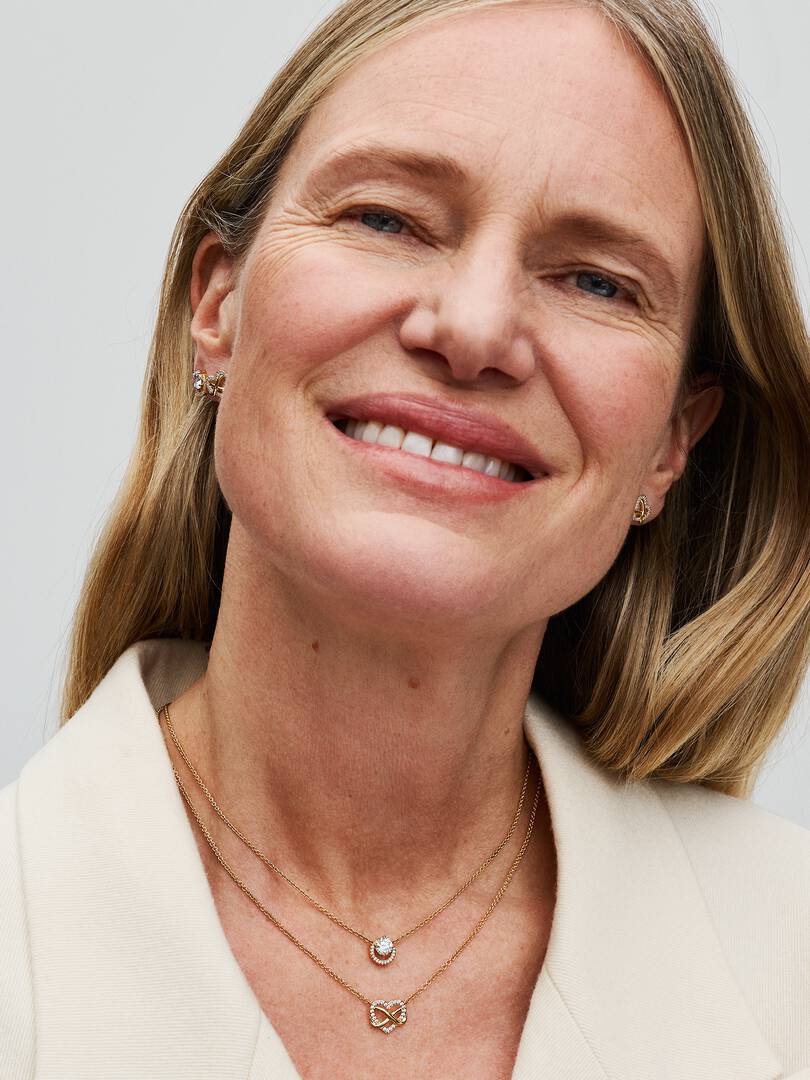 ones, delicately frames an asymmetric infinity symbol. As a symbol of eternal love, the necklace features an adjustable chain with three jump rings, allowing you to customize its length. Inspired by the profound bonds we share, this piece is a testament to the infinite depth of love and makes for a great gift.