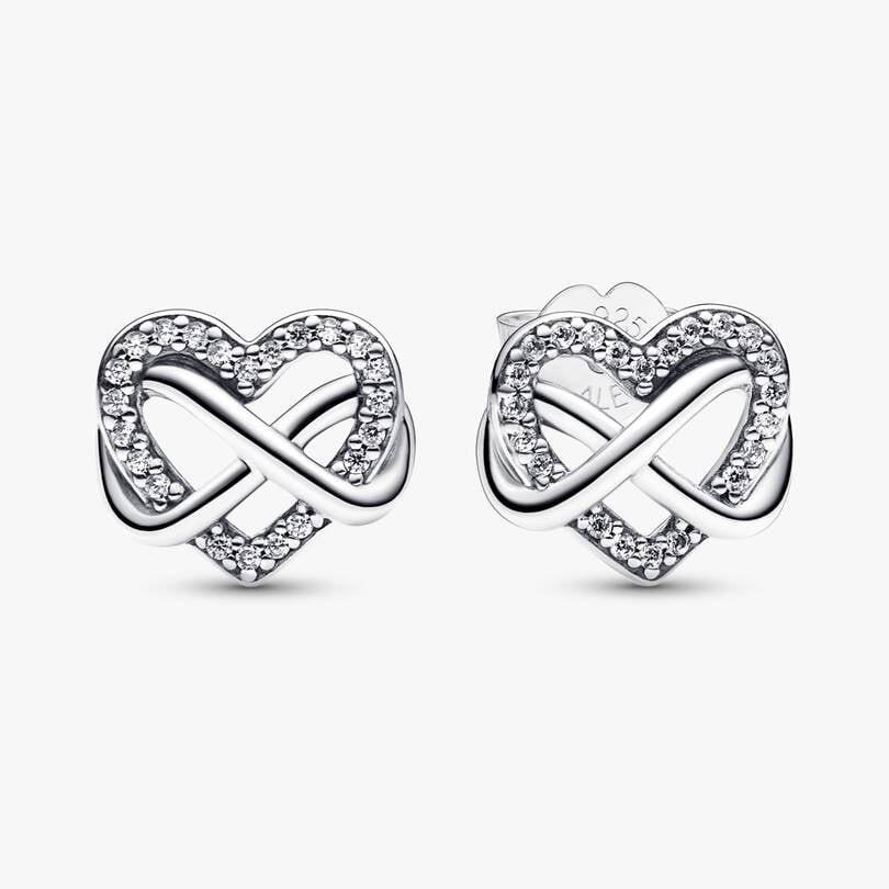 Representing the eternal love that binds family together, the Sparkling Infinity Heart Stud Earrings make a meaningful gift for your nearest and dearest. Each sterling silver earring features an openwork heart motif with
