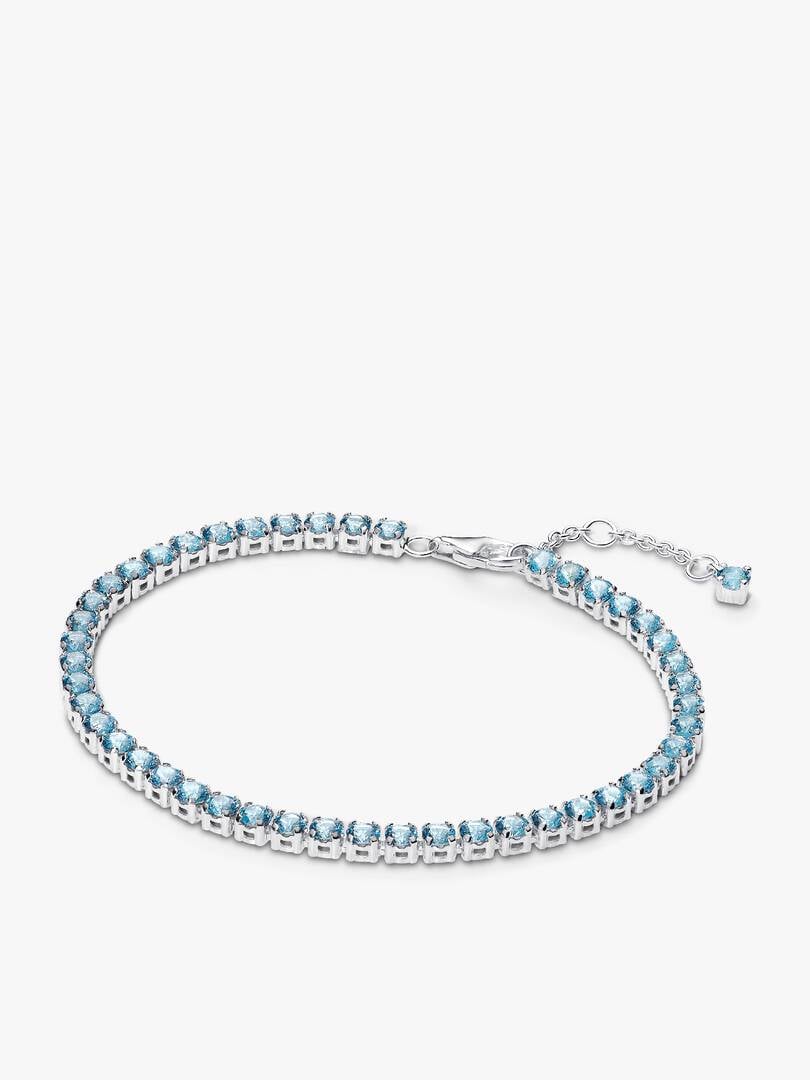 Make a bold statement with this stunning tennis bracelet, showcasing a row of round stones and a smaller stone dangling by the clasp, capturing the essence of modern style.