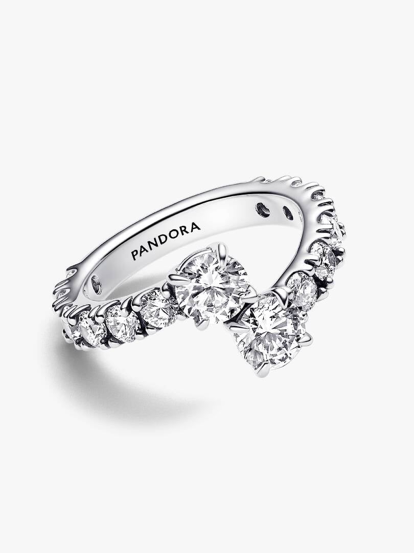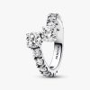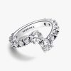 ubtly overlaps at the centre, with larger stones on each end, forming an eye-catching centerpiece. Inspired by brand ‘s Sparkling Row Eternity Rings, this piece offers a bold, dimensional look. Elevate your style with this exquisite sterling silver ring.