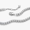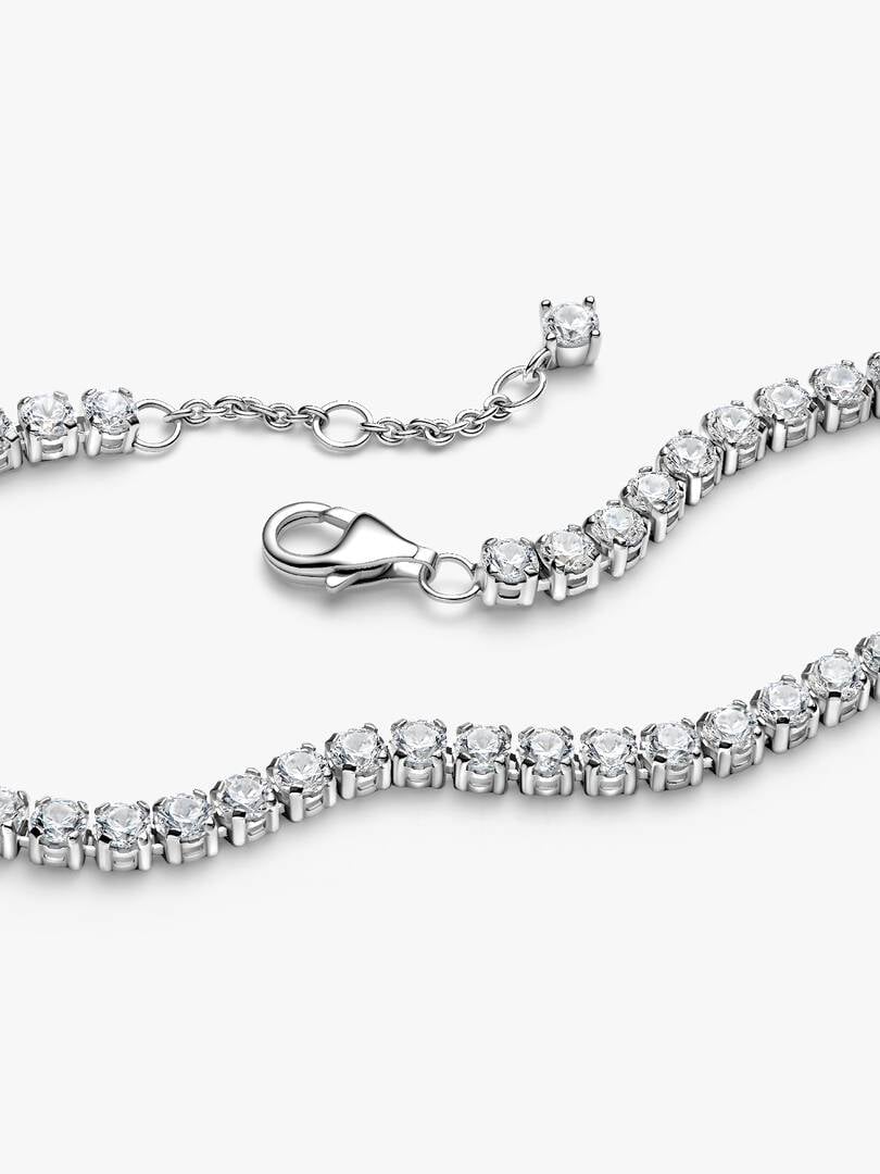 Tennis bracelets, anyone? This sterling silver Sparkling Tennis Bracelet features squared collets and is decorated with a bold line of clear cubic zirconia to make a statement fit for any occasion. Wear it on its own or