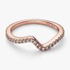 Hand-finished in 14k rose gold plating, our Sparkling Wave Ring curves to resemble the movement of a wave and features a row of round brilliant-cut clear cubic zirconia along its front. Wear it solo or stacked for a cont