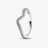 Hand-finished in sterling silver, our Sparkling Wave Ring curves to resemble the movement of a wave and features a row of round brilliant-cut clear cubic zirconia along its front. Wear it solo or stacked for a contempora