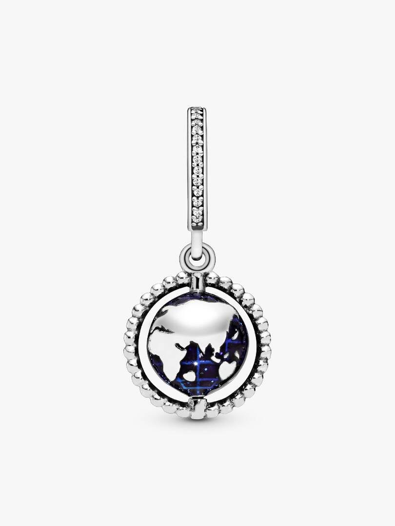 Let your love of travel shape your style with this globe charm. The hand-finished piece is shaped as the Earth and spins on its beaded axis. The globe charm features hand-applied shimmering blue enamel for a water-like f