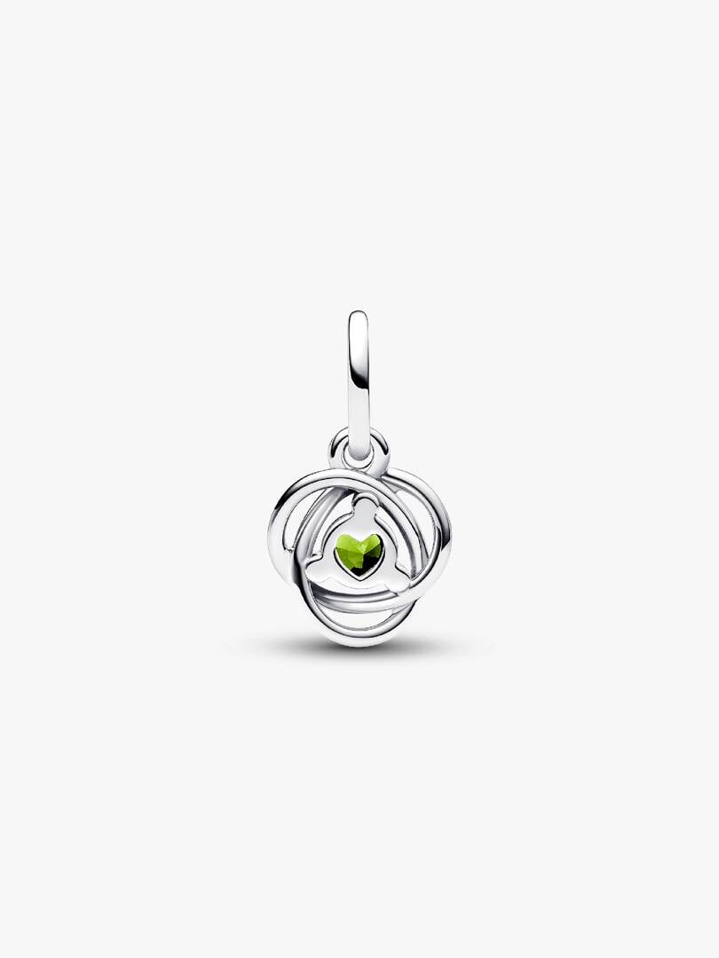 This intricate Spring Green Eternity Circle Dangle Charm is a must-have infinity charm for your brand Moments collection. Crafted in lustrous sterling silver, it features an openwork infinity braid decorated with a cen