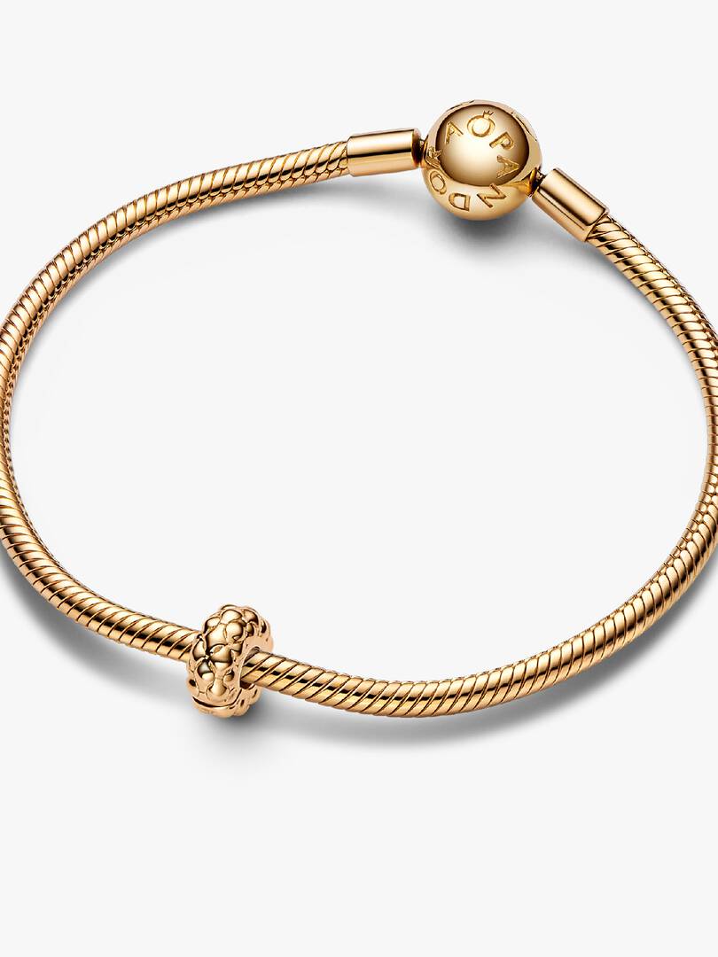 will feel right at home on your studded chain bracelet, as its pattern echoes the new brand icon. The charm features silicone grips on the inside and cannot be styled on threads, so it will stay fixed in one place on the chain as you move, while spacing out your charms. Create a camouflage-style look by adding it to the studded chain for a bold take.