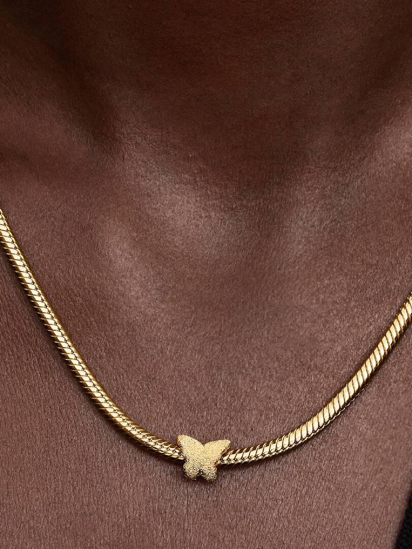 Make an (under)statement with brand Minis. Our 14k gold-plated butterfly charm is small in size but big in meaning. Featuring a diamond-point texture, it’s ready to fly onto your stack.