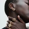 nd is polished, while the other features three white treated freshwater cultured pearls on one side and sparkling pavé on the other. Each treated freshwater cultured pearl is unique and can vary in size and color; normal wear and tear may occur with this material. Our freshwater cultured pearls are treated with bleaching and luster enhancement.