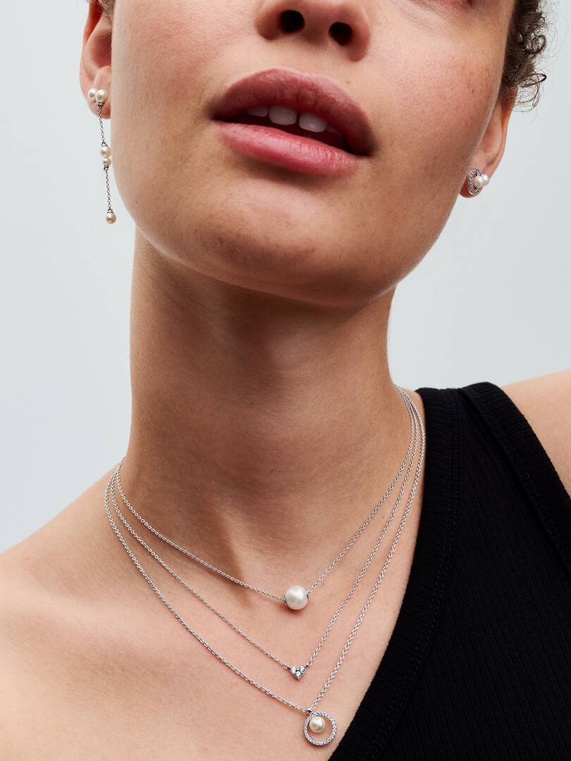 Level up your look with our Treated Freshwater Cultured Pearl & Pavé Collier Necklace. Crafted in sterling silver, it features an adjustable 45 cm chain, adorned with a lustrous treated freshwater cultured pearl and spar