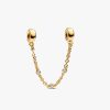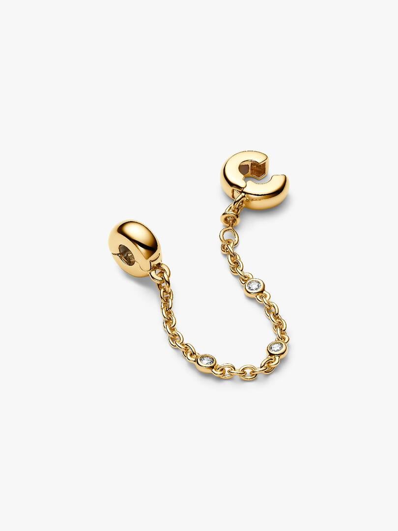 Keep your treasures safe with this 14k gold-plated safety chain. Each bail has threads inside to secure the charms on your brand Moments bracelet. It features three clear bezel-set stones on the chain to bring a touch