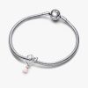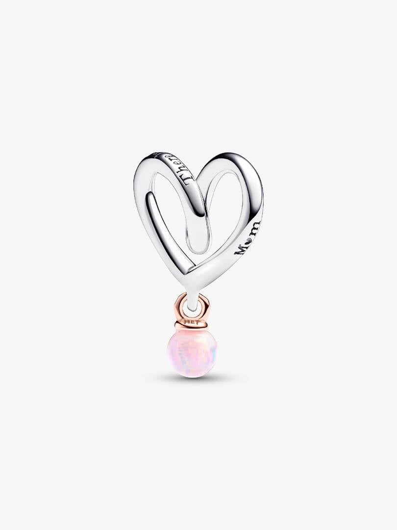 ating motif—a heart formed by looping sterling silver lines. Two engravings, “There is no one like you” and “Mom,” add a loving touch, where the ‘o’ in mom is shaped as a heart. A dangling 14k rose gold-plated pin showcases a round pink lab-created opal, representing the beauty of motherhood. Embrace the completeness of maternal love with this exquisite brand heart charm.