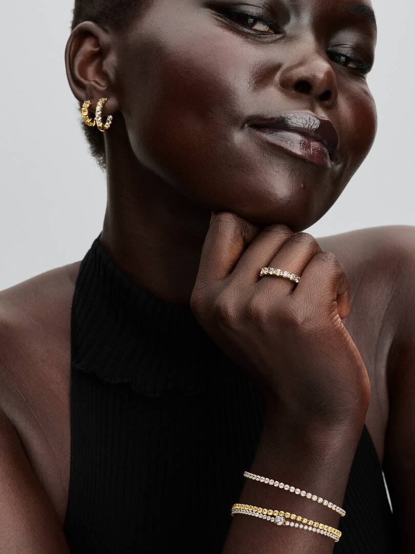 Add a ray of sunshine to your look with these charming hoop earrings, featuring a row of vibrant yellow cubic zirconia stones.